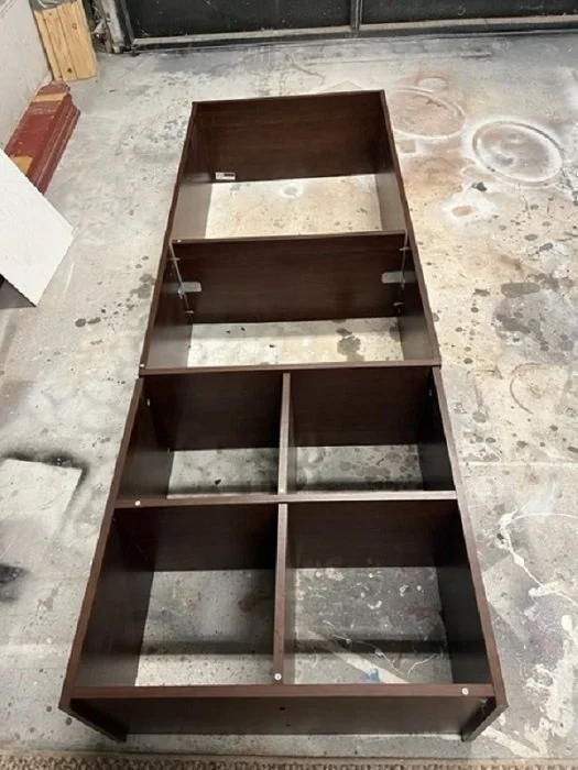 The shelves were in bad shape. We had to lay them down to work on them and take them apart.