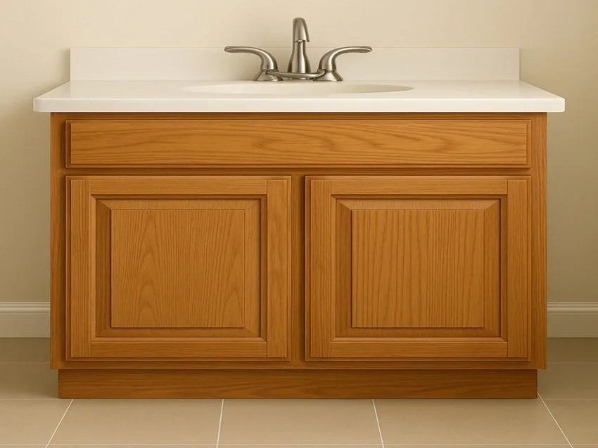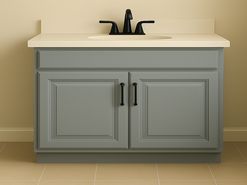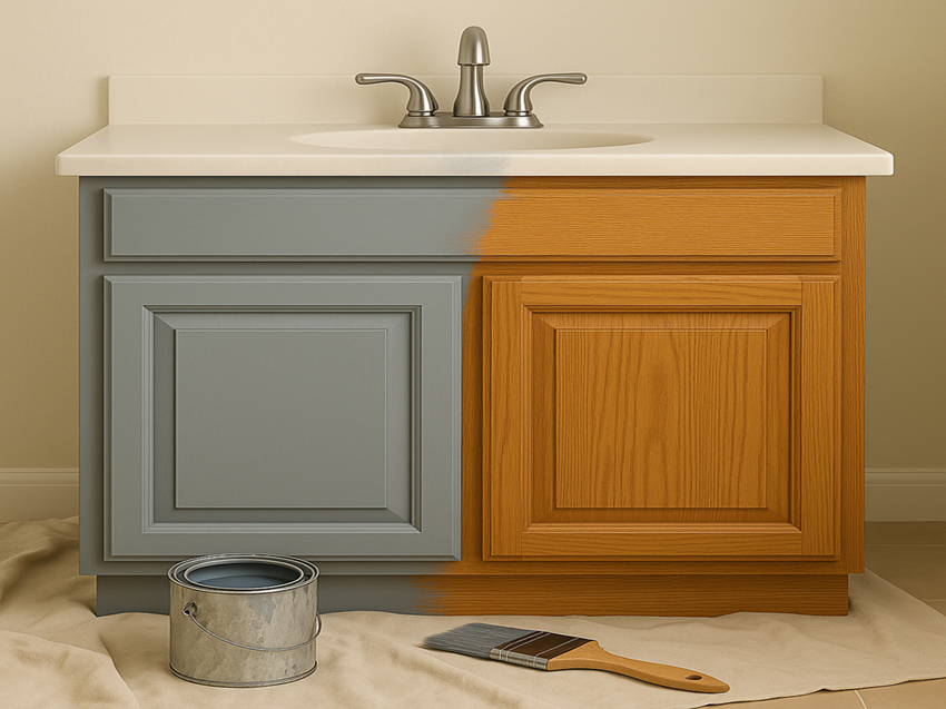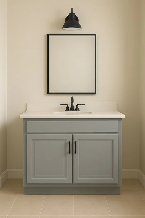 If your vanity is still structurally sound but feeling a little too beige, consider a fresh coat of paint. A bold navy, soothing sage, or even a creamy off-white can completely change the vibe from beigey to bougie.